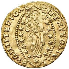 Au gr. 3,44 D/ San Marco porge il vessillo al Doge genuflesso R/ Il Redentore entro un’aureola ellittica stellata Mont. 1630 Paol. 1 Fr. 1274
