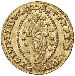 Au gr. 3,51 D/ San Marco porge il vessillo al Doge genuflesso R/ Il Redentore entro un’aureola ellittica stellata Mont. 527 Paol. 1 Fr. 1255