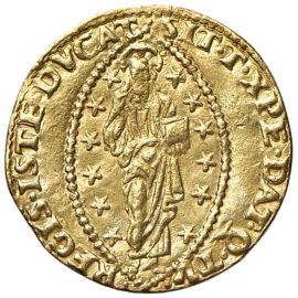 Au gr. 3,42 D/ San Marco porge il vessillo al Doge genuflesso R/ Il Redentore entro un’aureola ellittica stellata Mont. 479 Paol. 1 Fr. 1251