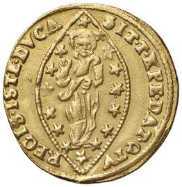 Au gr. 3,42 D/ San Marco porge il vessillo al Doge genuflesso R/ Il Redentore entro un’aureola ellittica stellata Mont. 3070 Paol. 1 Fr. 1435