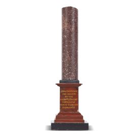 Costituito da un frammento di colonna in porfido su basamento di forma quadrangolare in marmo rosso recante sul fronte iscrizione in oro “COSTANTINUS PER CROCEM VICTOR AS.SILVESTRO HIC BAPTIZATUS CRUCIS FLORIAN PROPAGAVIT", cm 31x9,5x9,5
