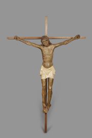 La tipologia e la concezione misurata di questo elegante Crocifisso ne rivelano un’origine toscana da orientare con maggior precisione verso il contesto artistico lucchese a cavallo tra Quattro e Cinquecento. A suggerirlo è la compassata dolcezza del volto, coronato dal serto di spine, accostabile ai busti del Redentore in marmo e in terracotta di Matteo Civitali, il celebre scultore lucchese responsabile anche di una prolifica produzione in legno in cui fu affiancato dal fratello Masseo, artista cui l’opera in esame potrebbe verosimilmente attribuirsi. Il carattere civitaliano dell’opera è inoltre confermato dal perizoma panneggiato con ampie falde levigate che trova riscontro anche nella produzione marmorea del maestro e della sua bottega