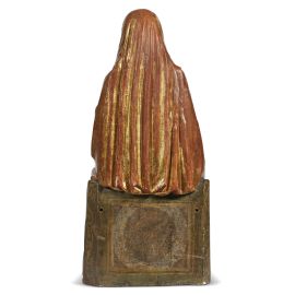 Venetian sculptor close to Giovanni Zebellana, enthroned Madonna, 1500, in carved, painted and gilded wood, 94x42x31 cm