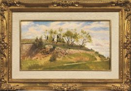 on the reverse: stamp of the Galleria d'Arte San Barnaba, stamp of the Galleria d'Arte Parronchi, inscribed "Eugenio Cecconi / I mandorli del convento", inscribed "Dipinto autentico e molto fine / di Eugenio Cecconi / Antonio Parronchi / Firenze 29-XII-1979"
