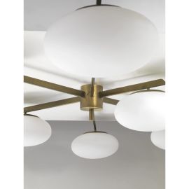 «6 LUNE» CEILING LAMP, BRASS AND GLASS