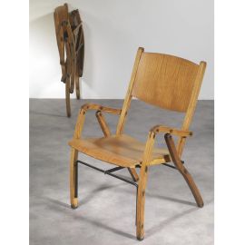A PAIR OF FOLDING CHAIRS, WOOD AND METAL