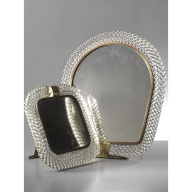 TABLE MIRROR, GLASS AND BRASS FRAME