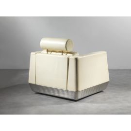 RECLINING ARMCHAIR FOR QANTAS FIRST CLASS LOUNGE, MELBOURNE AIRPORT, METAL STRUCTURE, IVORY LEATHER UPHOLSTERY
