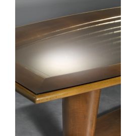 TABLE, WOODEN STRUCTURE, MIRROR AND GLASS TOP