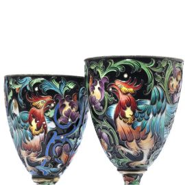 PAIR OF SILVER AND ENAMEL SMALL GLASSES, MOSCOW, 1908-1926