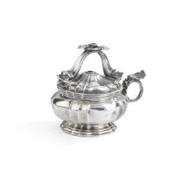 in argento di forma circolare sbalzata, presa ad anello, alt. cm 10, g 330 e alt. cm 7,5, g 180, La seconda stoppiniera reca all'interno bolli veneziani del Settecento