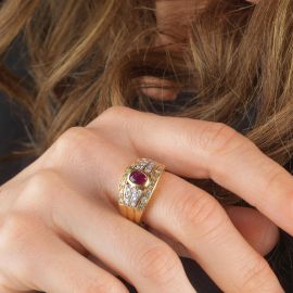 ANELLO A FASCIA CON RUBINO E DIAMANTI