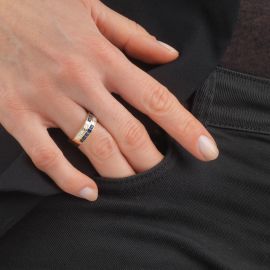 SAPPHIRE AND DIAMOND BAND RING IN 18KT YELLOW GOLD
