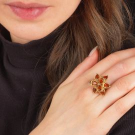 FLOWER-SHAPED QUARTZ RING IN 18KT YELLOW GOLD