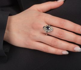 ANELLO A LOSANGA CON ZAFFIRI SINTETICI E DIAMANTI