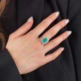 ANELLO A MARGHERITA CON SMERALDO E DIAMANTI
