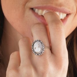 CAMEO AND DIAMOND RING IN 18KT WHITE GOLD