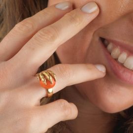 CLAW-SHAPED CORAL RING IN 18KT YELLOW GOLD