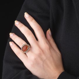 CARNELIAN AND DIAMOND RING IN SILVER AND GOLD