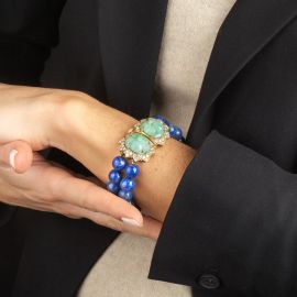 LAPISLAZULI JADE AND DIAMOND BRACELET IN 18KT YELLOW GOLD