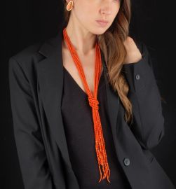 COLLANA A SCIARPA CON PAIO DI ORECCHINI IN CORALLO