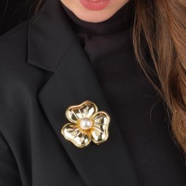 GRANDE SPILLA A FORMA DI FIORE CON PERLA MABE