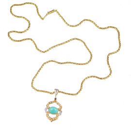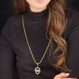 LUNGA COLLANA CON TURCHESE E DIAMANTI