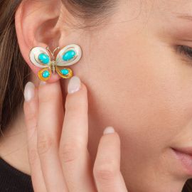 PAIO DI ORECCHINI A FORMA DI FARFALLE CON TURCHESI