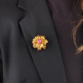 FLOWER-SHAPED RUBY BROOCH IN 18KT YELLOW GOLD