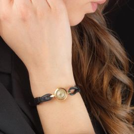 cassa in oro giallo 18kt, fondello a scatto, corona di carica sul fondello, quadrante argenté firmato Omega, indici applicati di colore oro, movimento a carica manuale, cinturino in pelle, fibbia in metallo dorato, gr. 9. Diam. mm 15