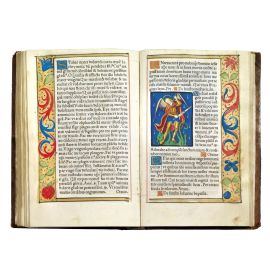 (Libro d’ore - Illustrati 500) Hore diuine virginis Marie secundum vsum Romanum cum alijs multis folio sequenti notatis vna cum figuris Apocalipsis & destructio Hierusalem & multis figuris, Biblie insertis. (Parisius nouiter īpressum p[er] Germano Hardouyn Librario. Cōmorante inter duas portas Palatij ad intersignium sancte margarete. Anno dñi. M.ccccc.xxxiij). [1533].