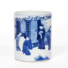 清 十九世纪 青花人物故事笔筒