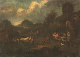 coppia di dipinti ad olio su tela, cm 62,5x87