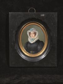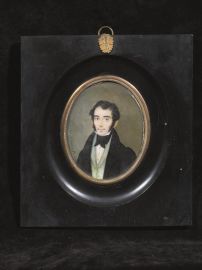 raffiguranti tre ritratti femminili e uno maschile firmato "Consoli fece lì 30 gen: 1830", entro cornici in legno ebanizzato con profilature in metallo dorato, cm 8,5x7 circa (4)