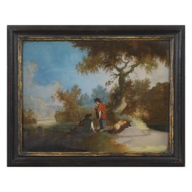 coppia di dipinti ad olio su vetro, cm 21,5x16,5