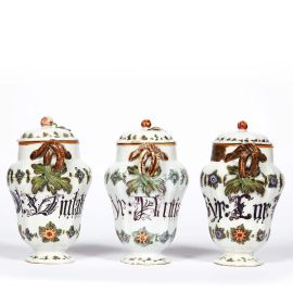 THREE SPOUTED PHARMACY JARS WITH LID, BASSANO, 18TH CENTURY