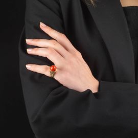 CHEVALIER CORAL RING IN 18KT YELLOW GOLD