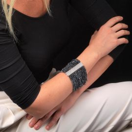 HEMATITE AND DIAMOND WIDE BAND BRACELET IN 18KT WHITE GOLD