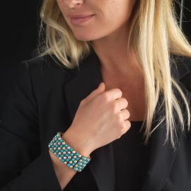 PEARL TURQUOISE AND DIAMOND BRACELET IN 18KT YELLOW GOLD