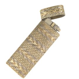 fusto rivestito in oro 18kt, decorato a maglia tessita in due colori, firmato Cartier Paris n. F24607, dim. cm 7x2,5x 1,4, gr. 96.