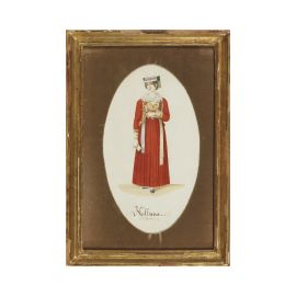 due acquarelli firmati "Salvatore Busuttil 1829" e due acquarelli, non di mano di Busuttil, raffiguranti una figura femminile e un saltarello romano, varie misure