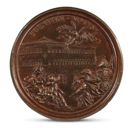 Retro. Veduta del palazzo Medici-Riccardi con figure allegoriche. Iscrizione EGENTIVM.VOTIS