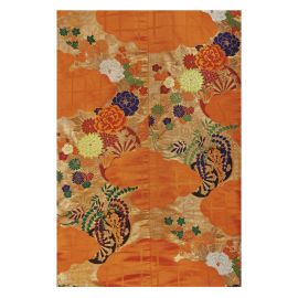 日本 江户 1615至1860 缎蜜柑地暗格纹金银绣丹梅菊叶轮云遮图 打掛うちかけ和服