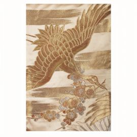 in seta dorata ricamato con decoro Gru e fiori Mei.