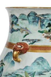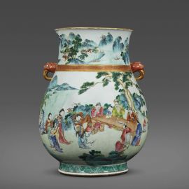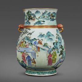 清 十八至十九世纪初 粉彩通景游园雅集兽耳大尊