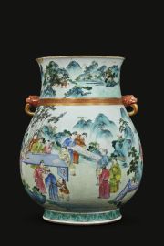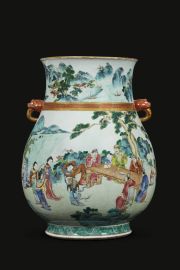 Uno straordinario esempio di pittura Yaji su porcellana si ritrova su questo vaso che è diviso in due scene . La prima è un inno alla bellezza della pittura e nella seconda scena troviamo la piacevolezza del canto.