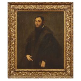 La posa di tre quarti, lo sguardo che infine emerge dal silente ma tumultuoso gioco chiaroscurale e inoltre la posizione delle braccia e delle mani inseriscono il dipinto nel corpus delle variazioni su questo tema eseguite dal Robusti: interessanti confronti possono trovarsi nei ritratti giovanili del 1545-46, come ad esempio il “Ritratto di gentiluomo” di Chatsworth House, ma anche in quelli di poco posteriori (1548-49) come il “Ritratto di gentiluomo in pelliccia” (in asta da Christie’s nel 1927), il “Ritratto di Jacopo Sansovino” (Collezione Cuball), il “Ritratto di gentiluomo” attribuito al Tintoretto da Phillips nel 1897 ed infine il “Ritratto di gentiluomo” nella National Gallery of Ireland del 1555.