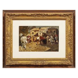 on the reverse: stamp of the Mondial Gallery of Milan, inscribed in pencil “Nel cortile della fattoria”