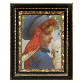 YOUNG GIRL WITH PARROTS