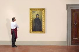 La Principessa Anna Maria Torlonia, ultima erede diretta del principe Alessandro, è qui ritratta dall’emiliano Giovanni Piancastelli. A Roma il pittore seppe infatti affermarsi nel mondo aristocratico, tanto come ritrattista quanto come consulente artistico, sino a divenire nel 1902 il primo direttore della Galleria Borghese.